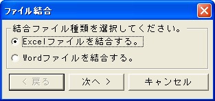 Excel用ファイル(xls,xlsx)またはWord用ファイル(doc,docx)のファイルを結合します。