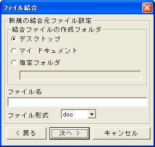 結合ファイルを作成するフォルダを「デスクトップ、マイドキュメント、指定フォルダ」の中から選択します。