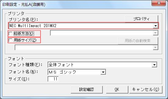 メニュー-[ツール(T)]-[プリンタ設定(P)]-[元払A(店舗用)(T)]で[印刷設定-元払A(店舗用)]を開きます。
