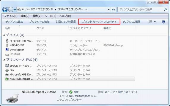 [プリントサーバープロパティ]をクリックします。