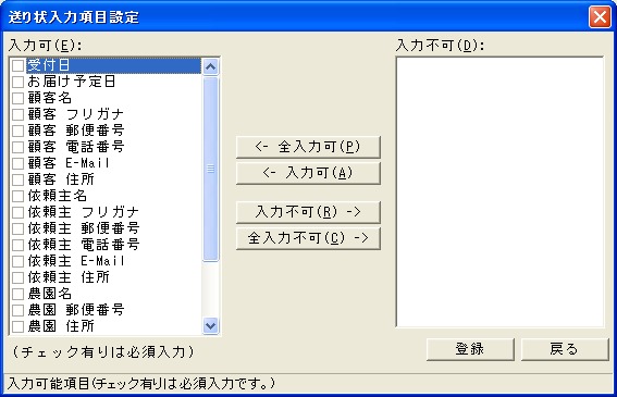 [送り状入力]で入力可能項目の設定を行います。