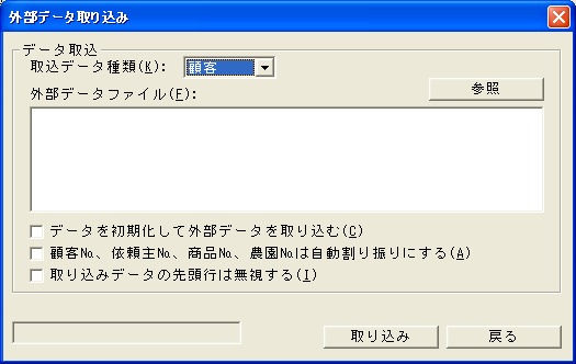 現在のデータを初期化して、外部データを取り込む場合にチェックを付けます。