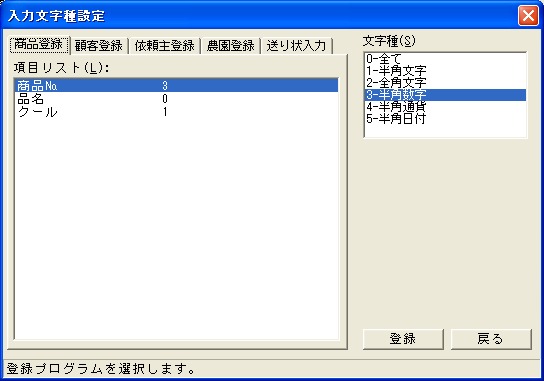 [農園登録]での入力時に使用する文字種類の設定を行います。