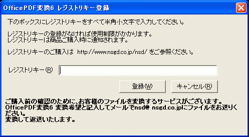 [OfficePDF変換6]を使用したシステムやプログラムを販売、公開されるときはご相談ください。別途ライセンス契約します。